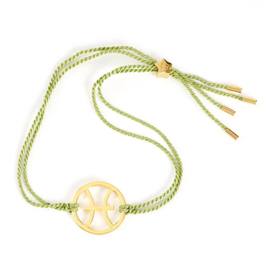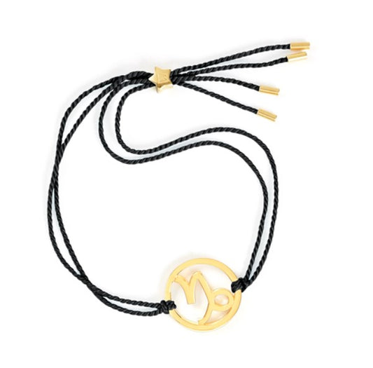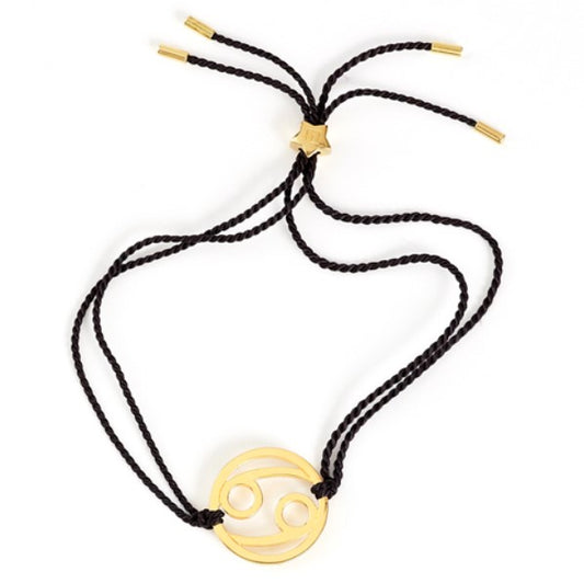 Beautifully designed Zodiac bracelets with 3 microns of 24k gold over 0.925 sterling silver bound with a natural adjustable silk cord made to the highest quality from Germany.